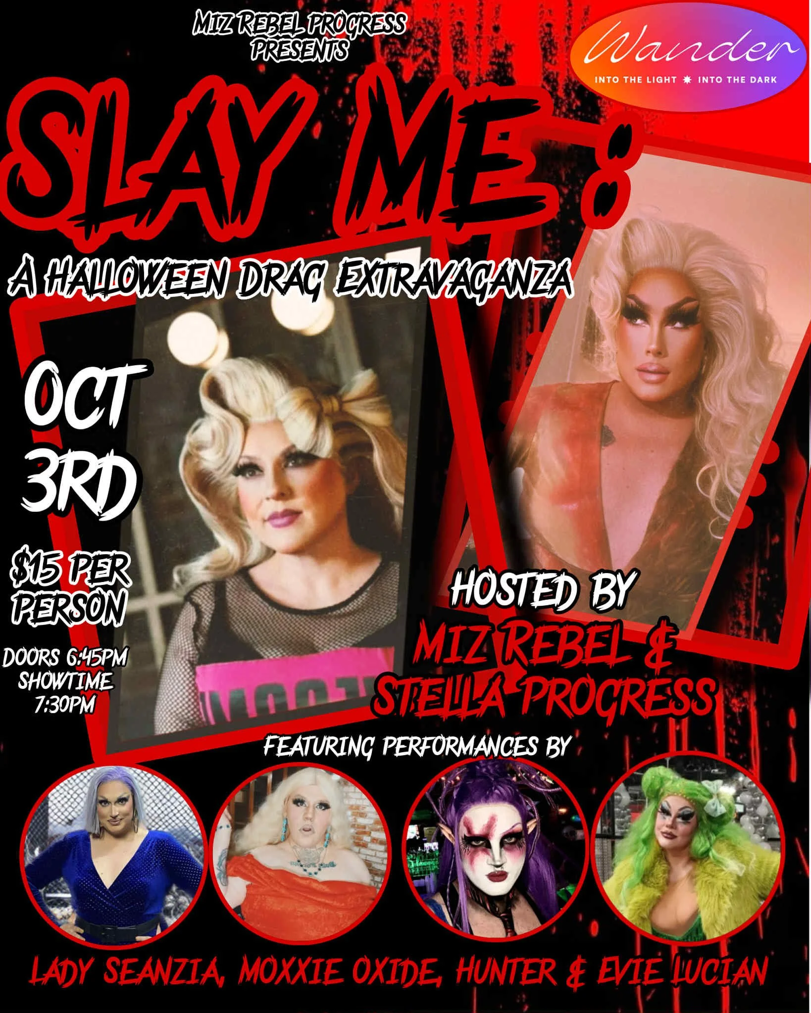 Come join us for a spooktacular night of fierce performances at WANDER Berkshires! Get ready to be amazed by stunning drag performers as they take the stage in their most extravagant Halloween best! This event , hosted by Miz Rebel and Stella Progress, promises to be a night full of ghoIliad glamour, witchy wit, and unforgettable moments. Featuring performances by Hunter, Evie Lucian, Lady SeanZia and Moxxie Oxide. Don't miss out on this fabulous celebration of drag culture and Halloween spirit!